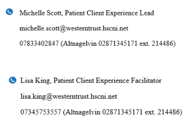 Posted by Lisa King, Patient Client Experience Facilitator, Professional Nursing, Midwifery & AHP, Western Health & Social Care Trust, on